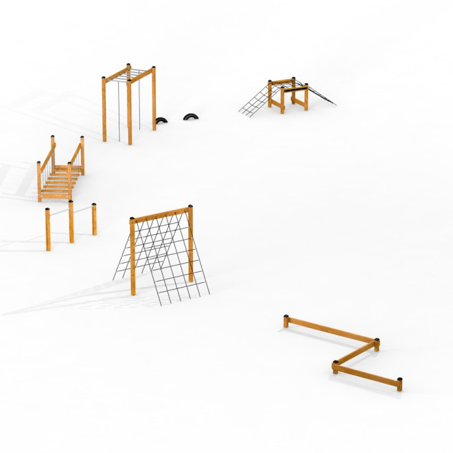 Această instalație este ideală pentru parcuri, școli sau zone sportive, încurajând copiii să petreacă timp activ în aer liber. Diversitatea elementelor din traseu dezvoltă abilitățile motrice, echilibrul și coordonarea, transformând joaca într-o activitate complexă și plăcută, care susține un stil de viață sănătos.