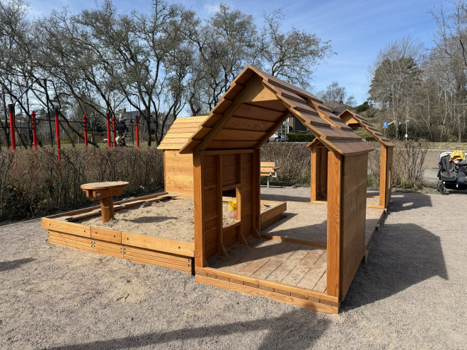 Realizat din lemn de larice și HDPE reciclat, Nature neighbourhood combină durabilitatea cu respectul pentru mediu. Lemnul de larice asigură rezistență naturală la intemperii, în timp ce materialul HDPE reciclat contribuie la protecția mediului și la o întreținere facilă, menținând aspectul plăcut al jocului pe termen lung.