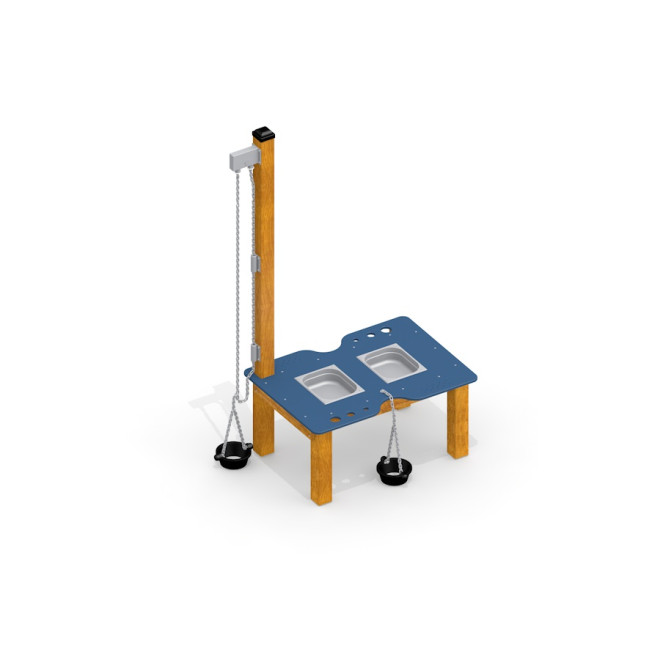 Confecționat din lemn de larice rezistent, oțel inoxidabil durabil și HDPE reciclat, acest echipament combină materiale de calitate superioară, atent selecționate pentru durabilitate și sustenabilitate. Lanțurile din oțel inoxidabil și componentele din PE și cauciuc completează structura robustă, asigurând funcționalitate și rezistență în timp.