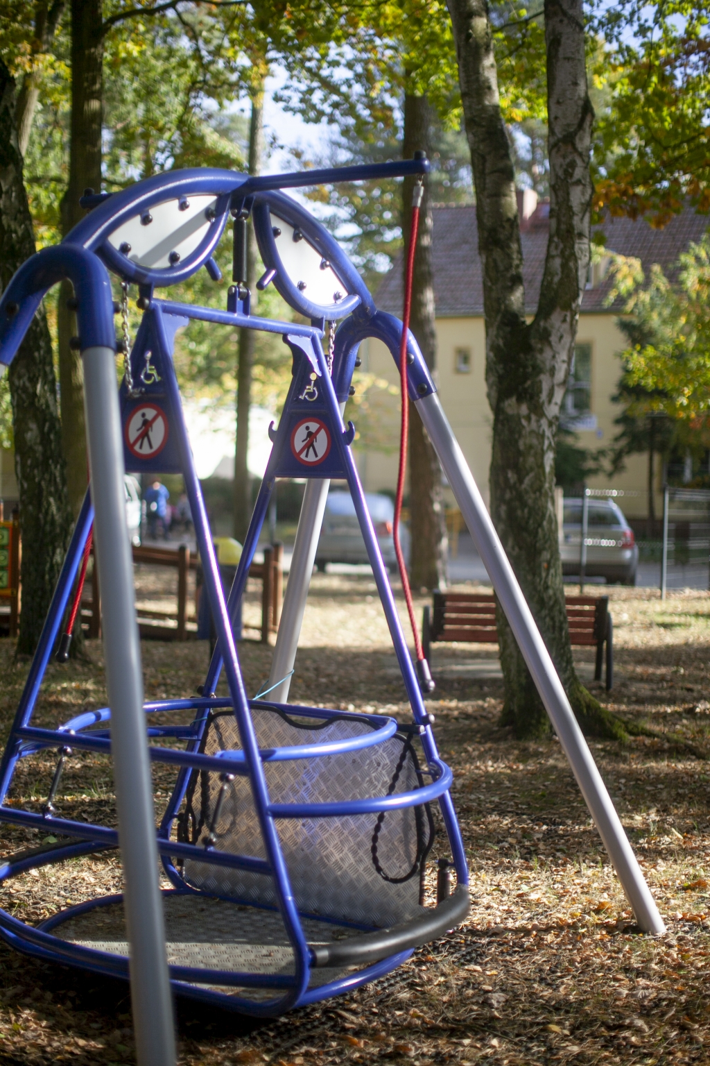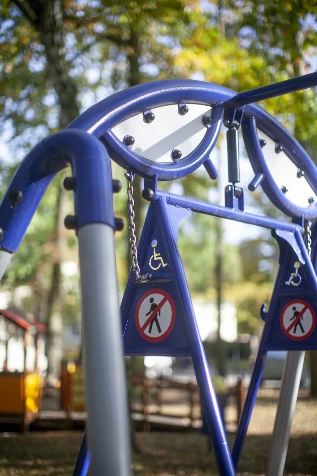 Wheelchair swing must be always used under surveillance and it is intended for wheelchair users only. If the wheelchair swing is installed in the public places, such as parks and public squares, it must be equipped with the additional safeguards to prevent an unauthorized use. Locking devices and swing blockade and/or fence with lockable gate are recommended.